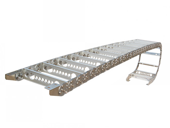 TL系列主體是由鏈板(選用優(yōu)良鋼板經(jīng)淬火后再鍍鉻處理)、支撐板(擠拉鋁合金)、軸銷(合金鋼)等部件構(gòu)成。使電纜或橡膠管與拖鏈之間不發(fā)生相對運動,不發(fā)生曲解變形,鏈板經(jīng)鍍鉻處理外形作用新穎,結(jié)構(gòu)合理,活絡(luò)強(qiáng)度高,該產(chǎn)品鋼性好,不變形.裝置便當(dāng),運用可靠,易拆裝,尤其是本產(chǎn)品選用了高強(qiáng)度耐磨材料,合金銅為軸銷,提高了產(chǎn)品的耐用消費品磨強(qiáng)度,彎曲更活絡(luò),阻力更小,降低了噪音,從可保證長期運用不變形,有彎曲,不下垂。