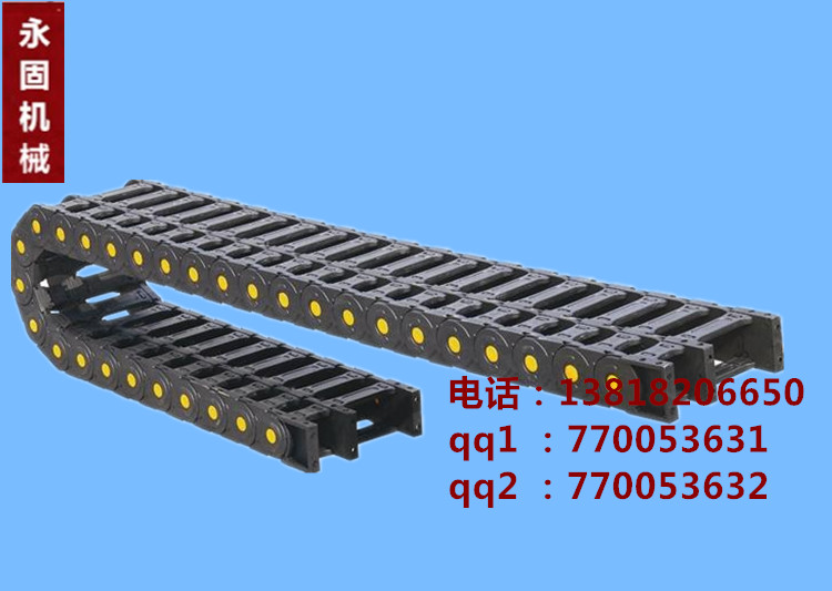 電纜拖鏈適用于數(shù)控機(jī)床、加工中心、自動(dòng)化機(jī)械及生產(chǎn)線等各類機(jī)床、機(jī)器人、運(yùn)輸機(jī)械、測(cè)量?jī)x器、搬運(yùn)裝置以及其它驅(qū)動(dòng)控制作為電線、電纜液、氣軟管的防護(hù)裝置,電纜拖鏈能隨機(jī)床、機(jī)械設(shè)備移動(dòng)部件協(xié)調(diào)地運(yùn)行,可發(fā)揮安全保護(hù)和導(dǎo)向的能力,可延長(zhǎng)被保護(hù)的電線、電纜、液、氣軟管的使用壽命,降低消耗,可大大改善機(jī)床、機(jī)械設(shè)備的電線、電纜、液、氣軟管分布零亂的狀況,電纜拖鏈使之整齊、規(guī)則地排列在一起,能增強(qiáng)機(jī)床、機(jī)械設(shè)備的整體藝術(shù)造型效果。